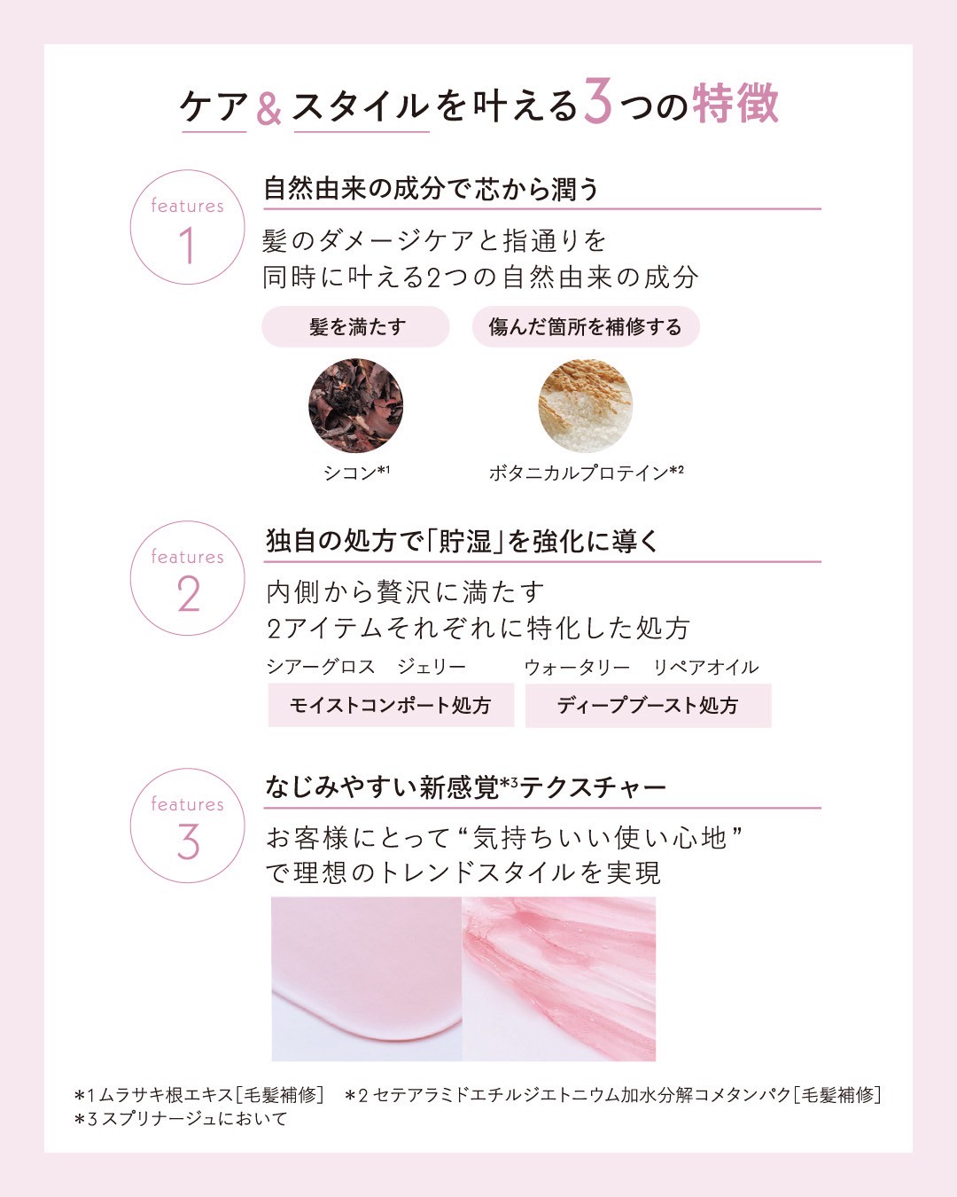 スプリナージュが大切にしてきた自然由来の成分へのこだわりによって、髪へのなじみやすさを計算しつくした新感覚*テクスチャーのヘアケア2品が誕生し、スタイリングの新たな可能性を広げます。 ※スプリナージュにおける