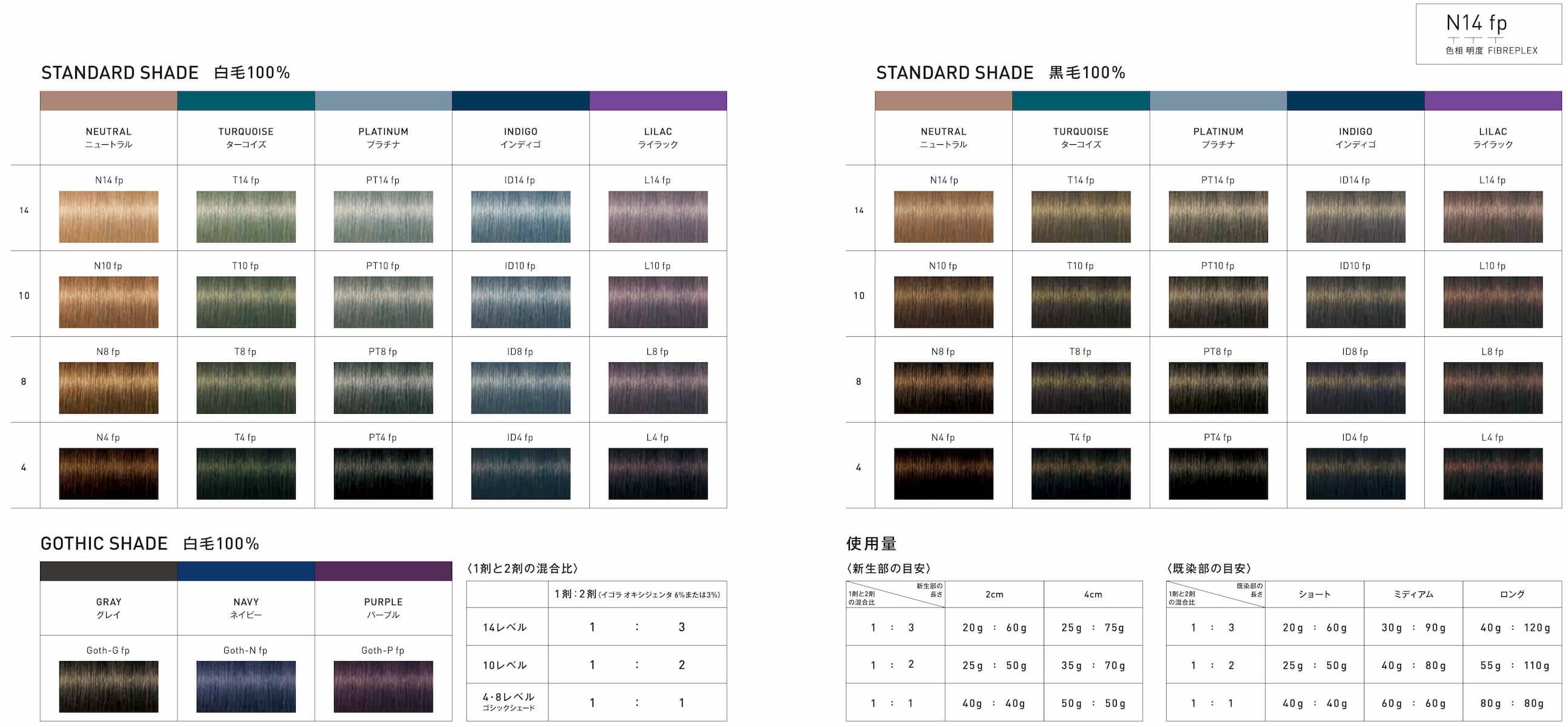 1剤と2剤の混合比についてはカラーチャートの説明でご確認ください。